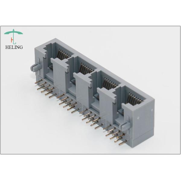 Unshielded 1x4 Four Ports RJ45 Female Connector For Network Modem Grey Color Images |
